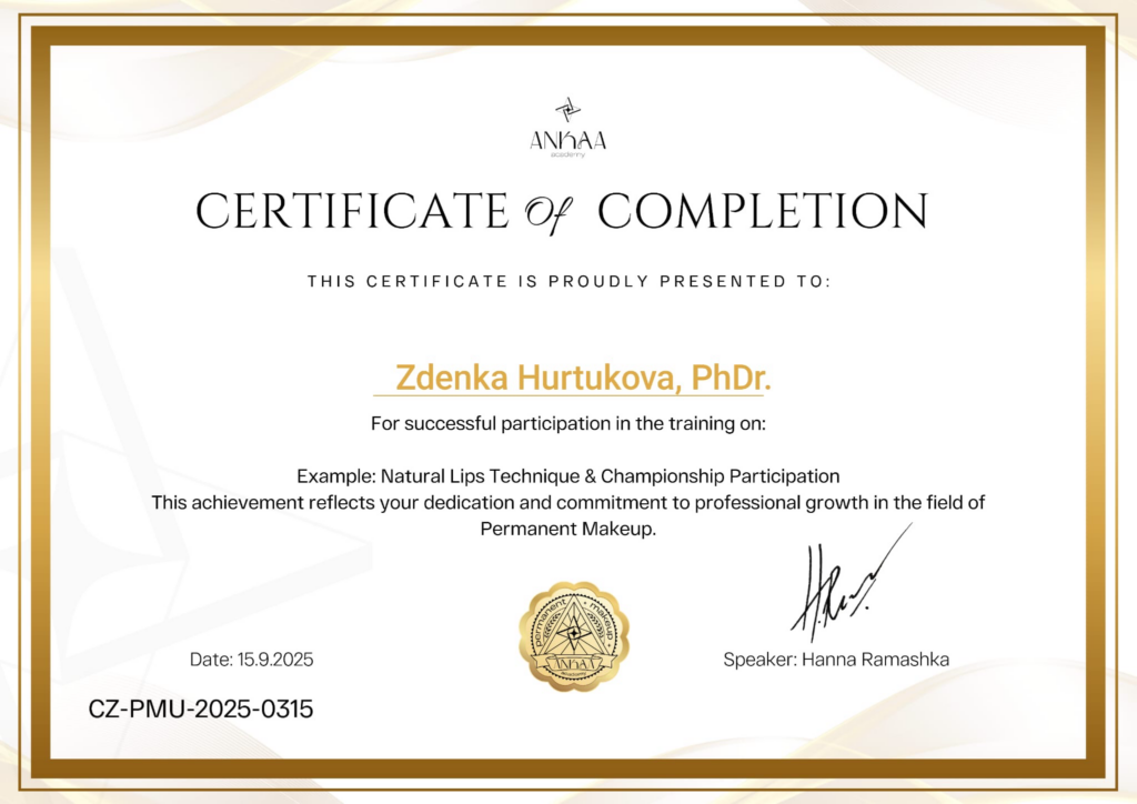 specialistka na permanentní make – up s praxí od r. 1993 – s profesní kvalifikací: